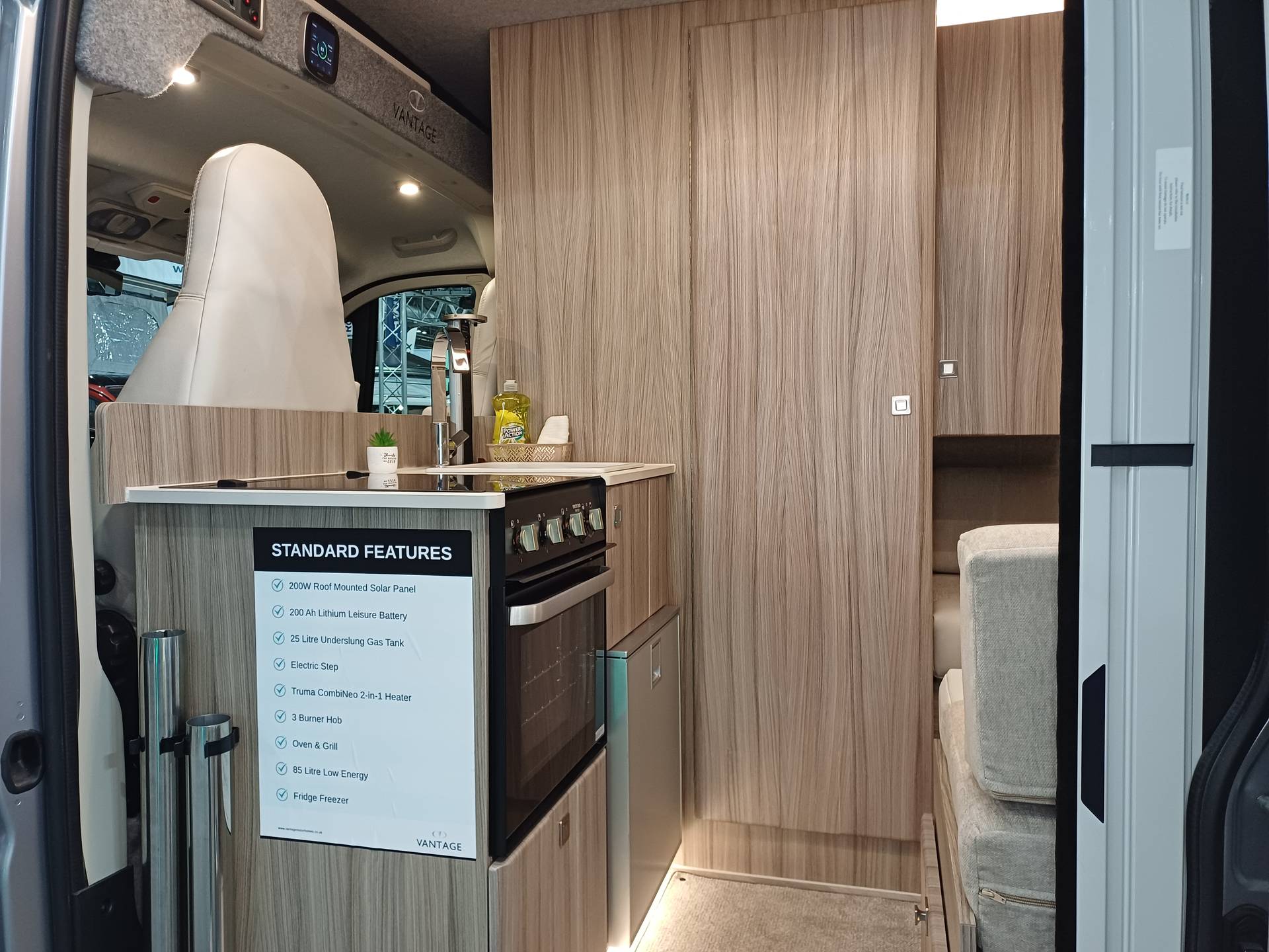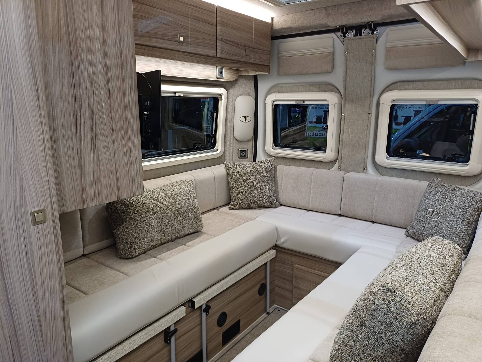 Throughout the vehicle we fit Remis blinds including the cab. Visually impressive with its surrounding frame and pleated material to help you get a better nights sleep. This prevents others from looking in and protects the cab from sunlight.