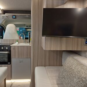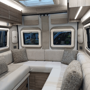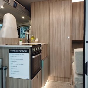 Its comprehensive range of features makes it the ideal upgrade from a pop-top or a convenient option for those looking to downsize. As well as a full oven/grill with a three burner hob, the sink and low energy fridge freezer provide a luxury experience that everyone onboard can enjoy. With a sizeable lounge, fully accessorised washroom and detailed kitchen area, this all-inclusive yet compact van conversion has everything you need for a carefree getaway.