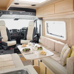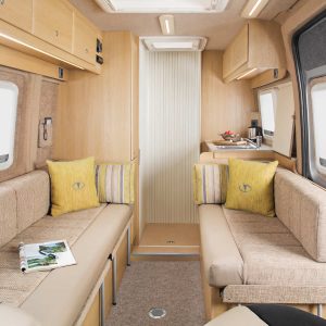 The front lounge area in the Gem is spacious, even after conversion into a double bed it is still leaves access to a user friendly kitchen.