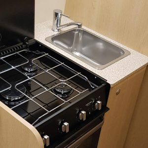 In addition to a lounge area that is easily converted to a double bed, this luxury package is completed by a functional washroom and a fully equipped kitchen area. The large low energy fridge freezer, three burner hob and oven, and sink with an inset drainer tray will allow you to bring all the comforts of home with you on your getaways.