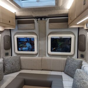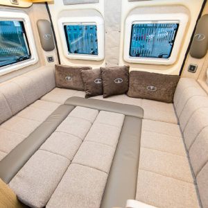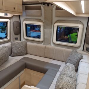 Multiple storage options onboard will allow you to bring everything you need to travel in comfort. The luxurious U-shaped rear lounge is ideal for relaxing and dining and easily transforms into a full size double bed with large under-bed boxes and overhead lockers.