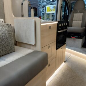 At only 5.41m you’ll be amazed at the space and comfort that the highly popular MED compact rear lounge van conversion offers. Its excellent versatility means it’s perfect for everyday use or your next relaxing motorhome holiday. Fitted with a fully appointed washroom, this is the most comprehensive compact motorhome package currently available on the market.