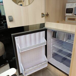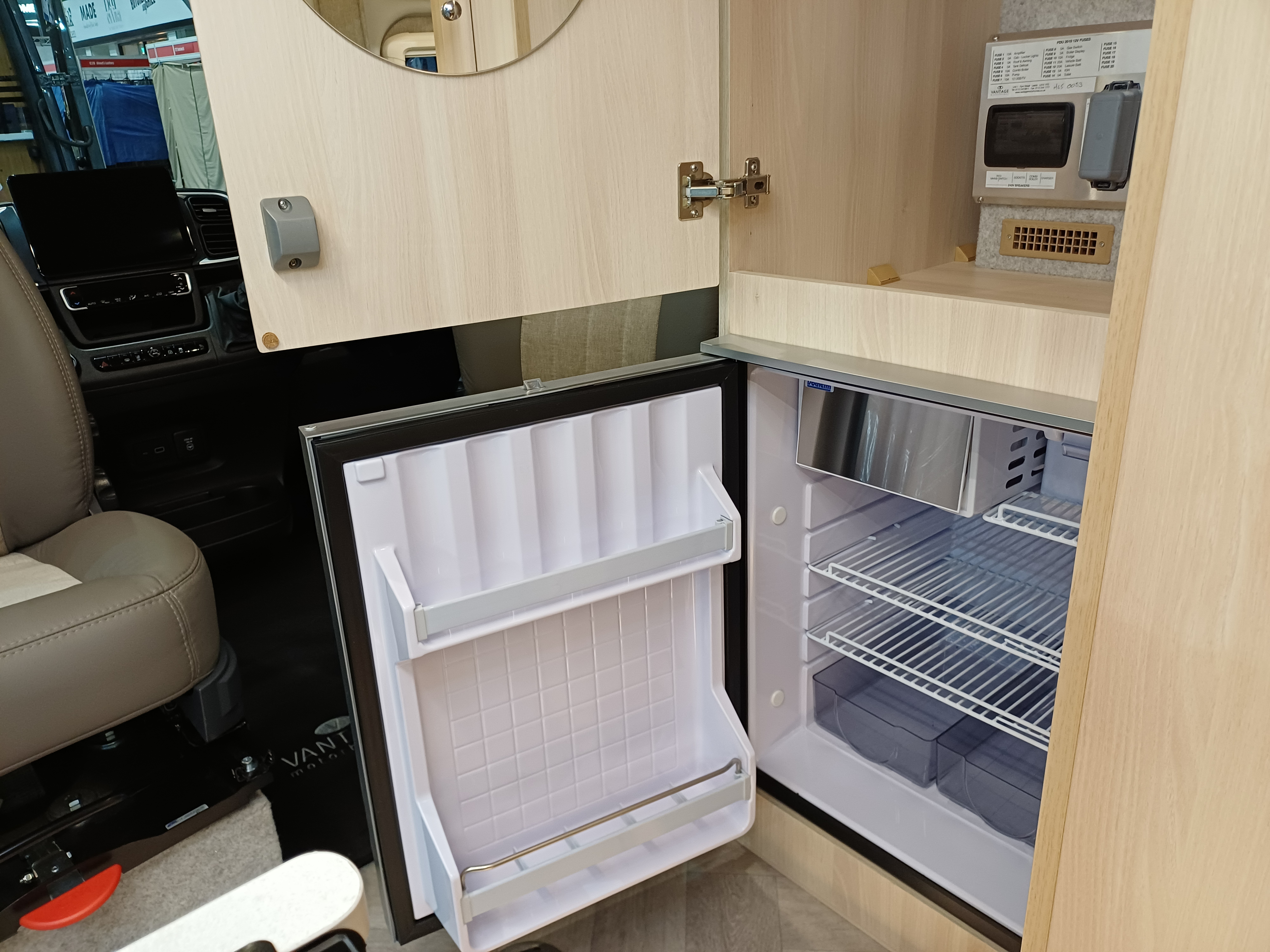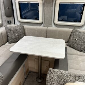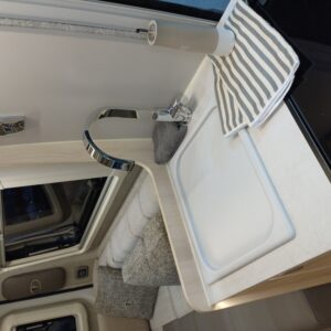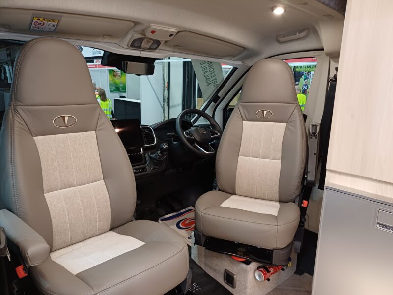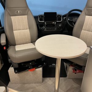 Throughout the vehicle we fit Remis blinds including the cab. Visually impressive with its surrounding frame and pleated material to help you get a better nights sleep. This prevents others from looking in and protects the cab from sunlight. The front Cab seats swivel to create a comfortable dinette.