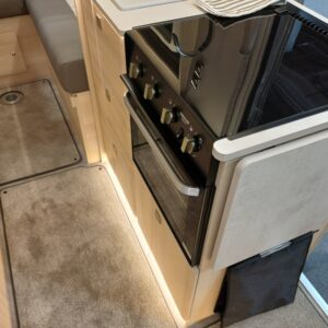 The washroom incorporates a shower, toilet, large sink and spacious bathroom cabinet which gives you everything you need for off-grid camping.