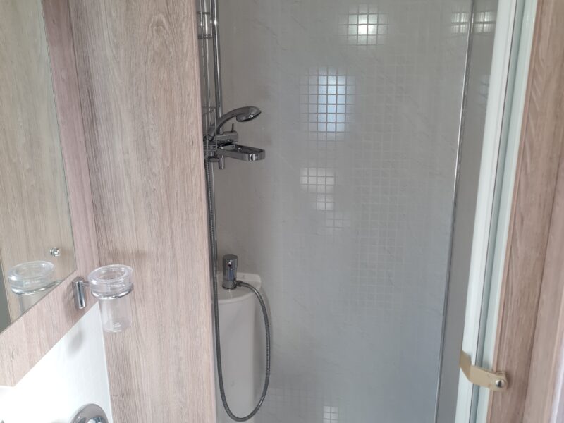 - Pedestal toilet, wash hand basin and separate shower cubicle