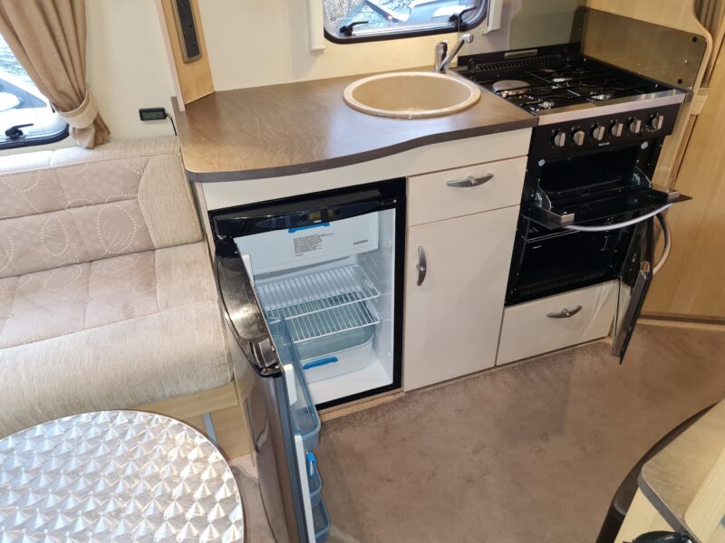 - Thetford 3 burner gas hob, electric hotplate and separate gas oven and grill