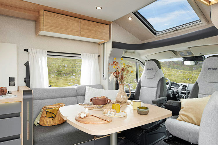 Vantage Motorhomes are delighted to offer this new Pilote P740FGJ Evidence model. Measuring 7.45m this is a comfortable low-profile for two people with twin beds. Explore this streamlined motorhome, combining comfort and practicality in perfect harmony. Inside, you’ll be seduced by its clever layout and modern equipment, guaranteeing you unforgettable journeys.