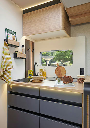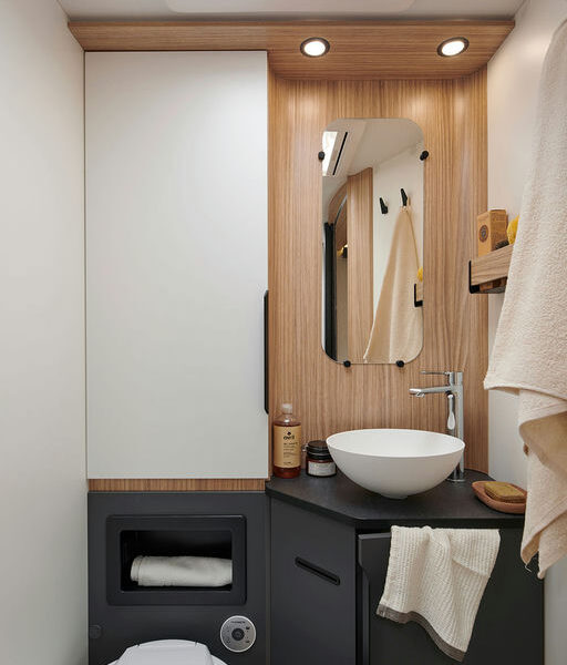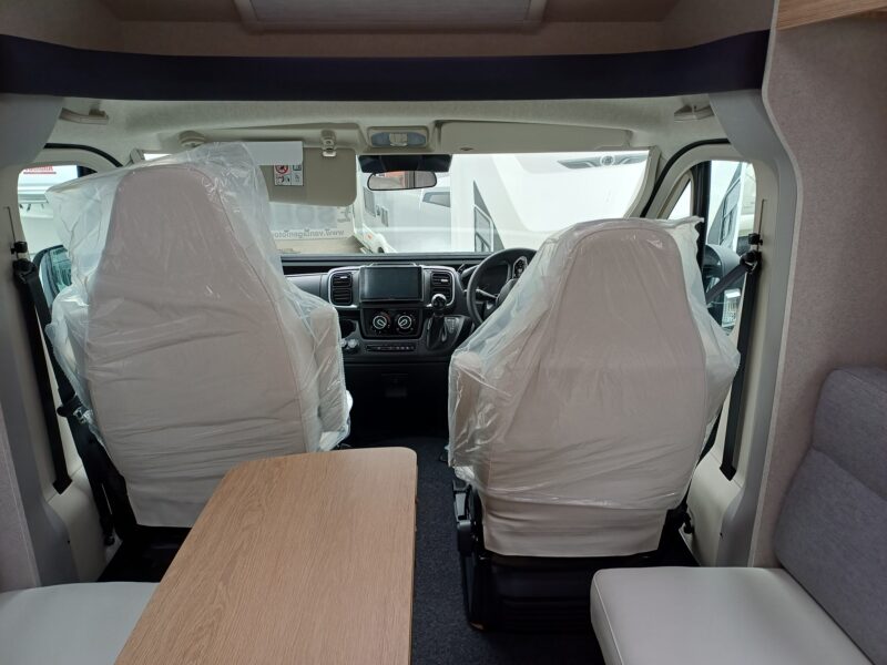 Base vehicle = 2.2-litre 140 hp engine – automatic transmission – 3.5 T Fiat® chassis. 9” PACK: Pioneer car radio with 9″ screen, DAB, GPS, AppleCar /Android Auto, reversing camera, and living area and cab speakers