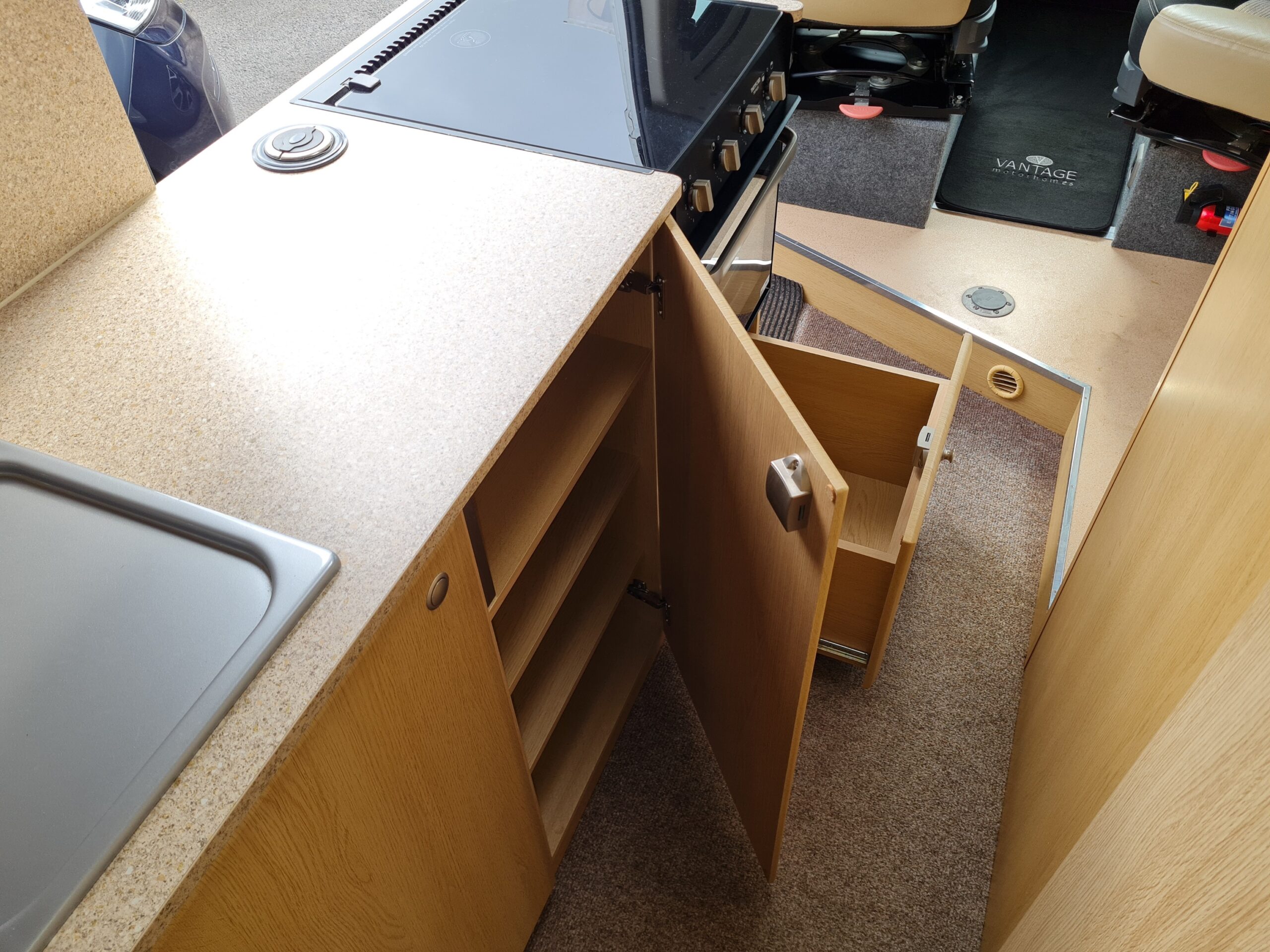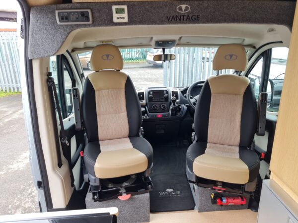 The Vantage MAX has a relaxing lounge area with high-spec kitchen and washroom with shower. At 6m in length this lovely motorhome has plenty of storage space and the front cab seats can be used as a front dinette. There are a choice of table sizes that can be used either inside or outside the van with the tripod provided.