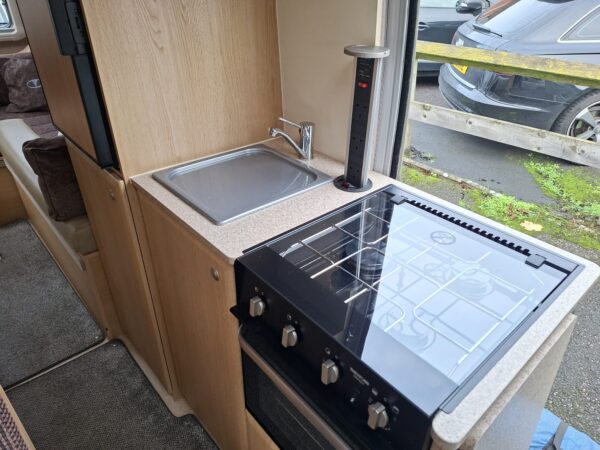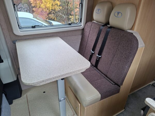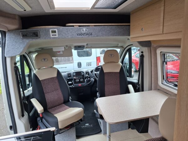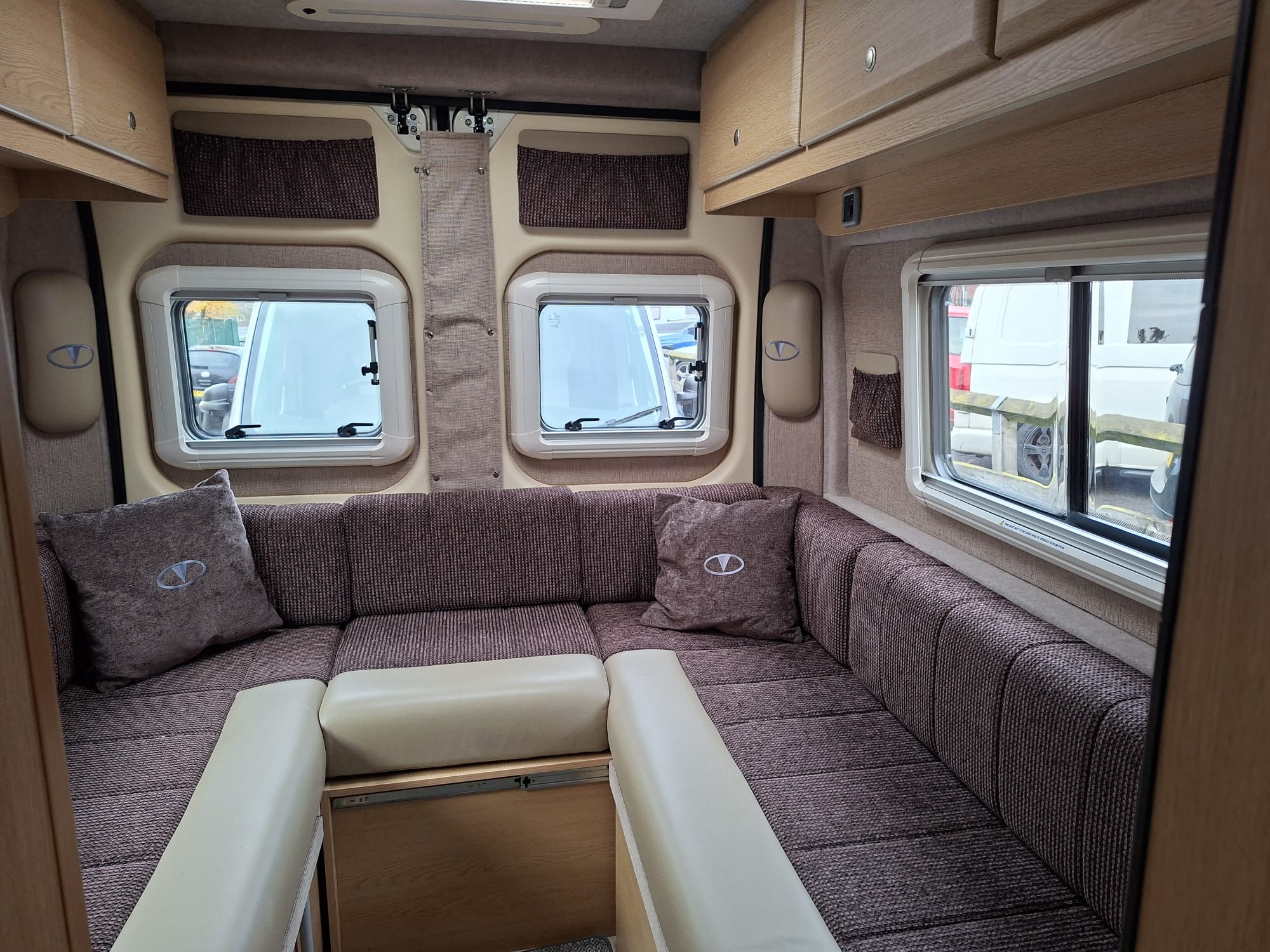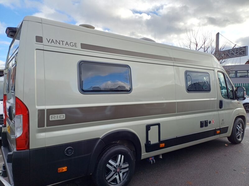 At 6.36 metres the RIO has all the luxury of other Vantage models, with a large rear lounge that converts into two single beds or one large double, a high specification kitchen and washroom and the added extra of four belted seats in a large front dinette. The RIO is perfect for a day trip for four or the longer haul with the front dinette not only giviing you a fantastic dining area but also converting into a handy third bed, making this motorhome a true all-rounder. There is an abundance of storage and this vehicle has the option to have a walk through for access to the lounge from the rear doors.