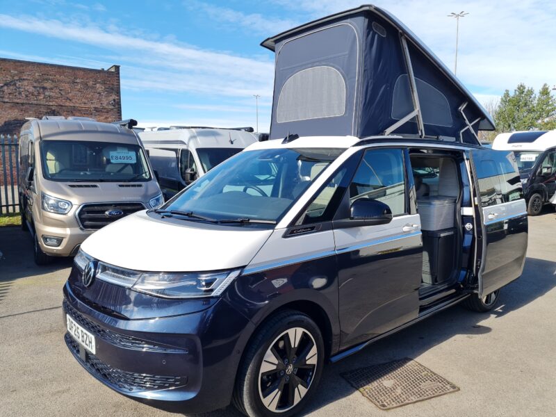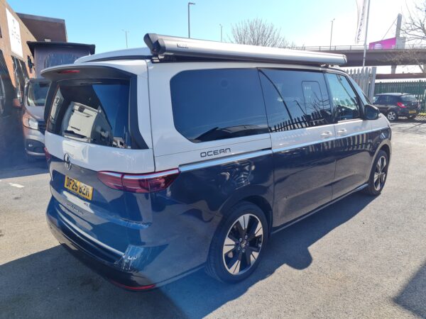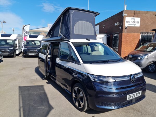 Vantage Motorhomes are delighted to offer this beautiful 2025 VW California Ocean, Euro 6a, based on the 1968cc, 150bhp, Volkswagen ST with only 2,053 miles. This half and halk, blue and white motorhome is in a lovely condition with an electrically operated elevating roof. The van has the following features;