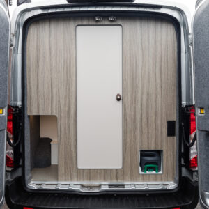 At the rear is an external door from the washroom, great for muddy paws and boots to be washed off before entering the lounge space. There is rear boot storage and space to hang chairs on the rear doors.