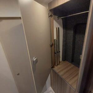 The ORA offers large wardrobe storage space and a hanging rail for clothes in the rear washroom.